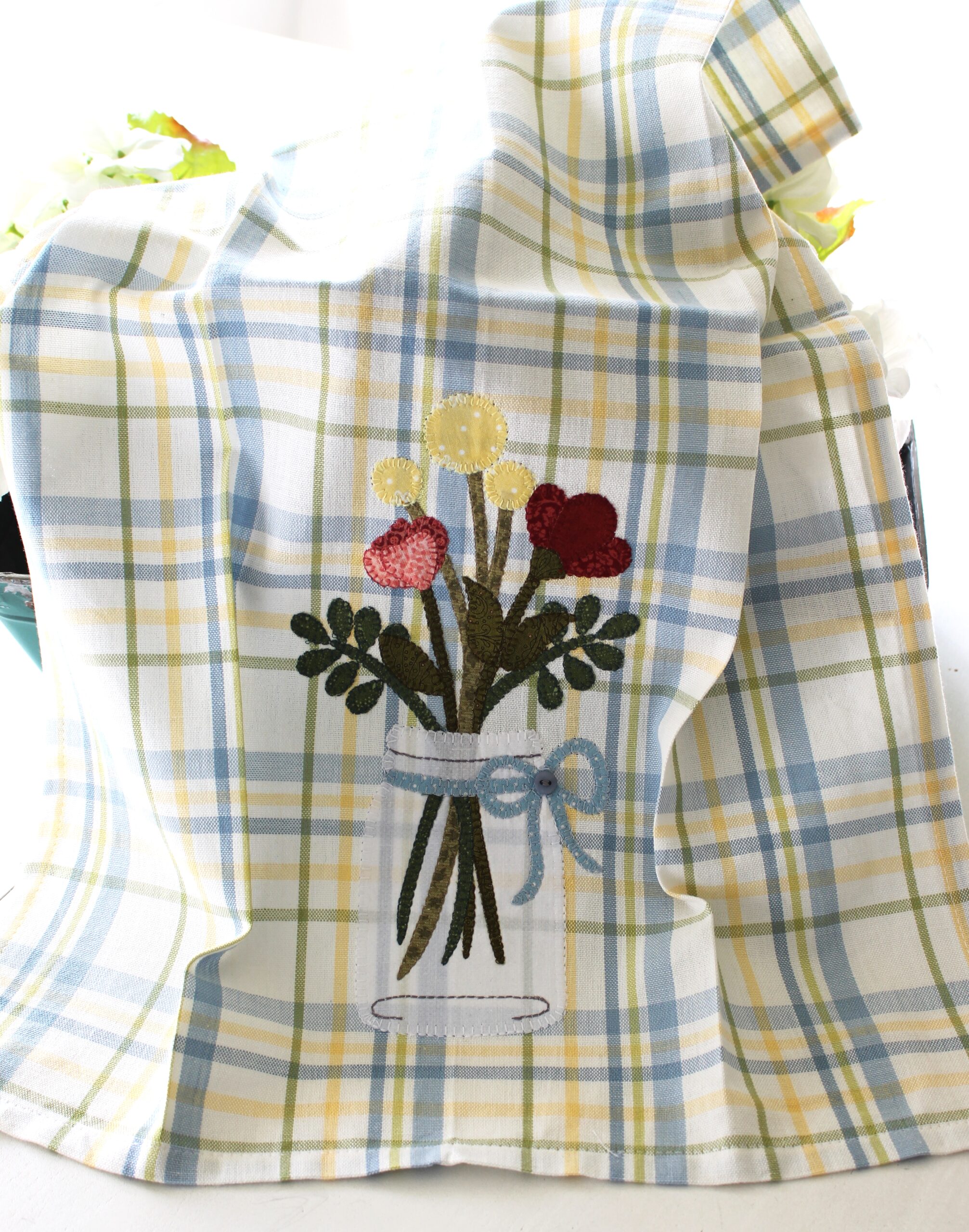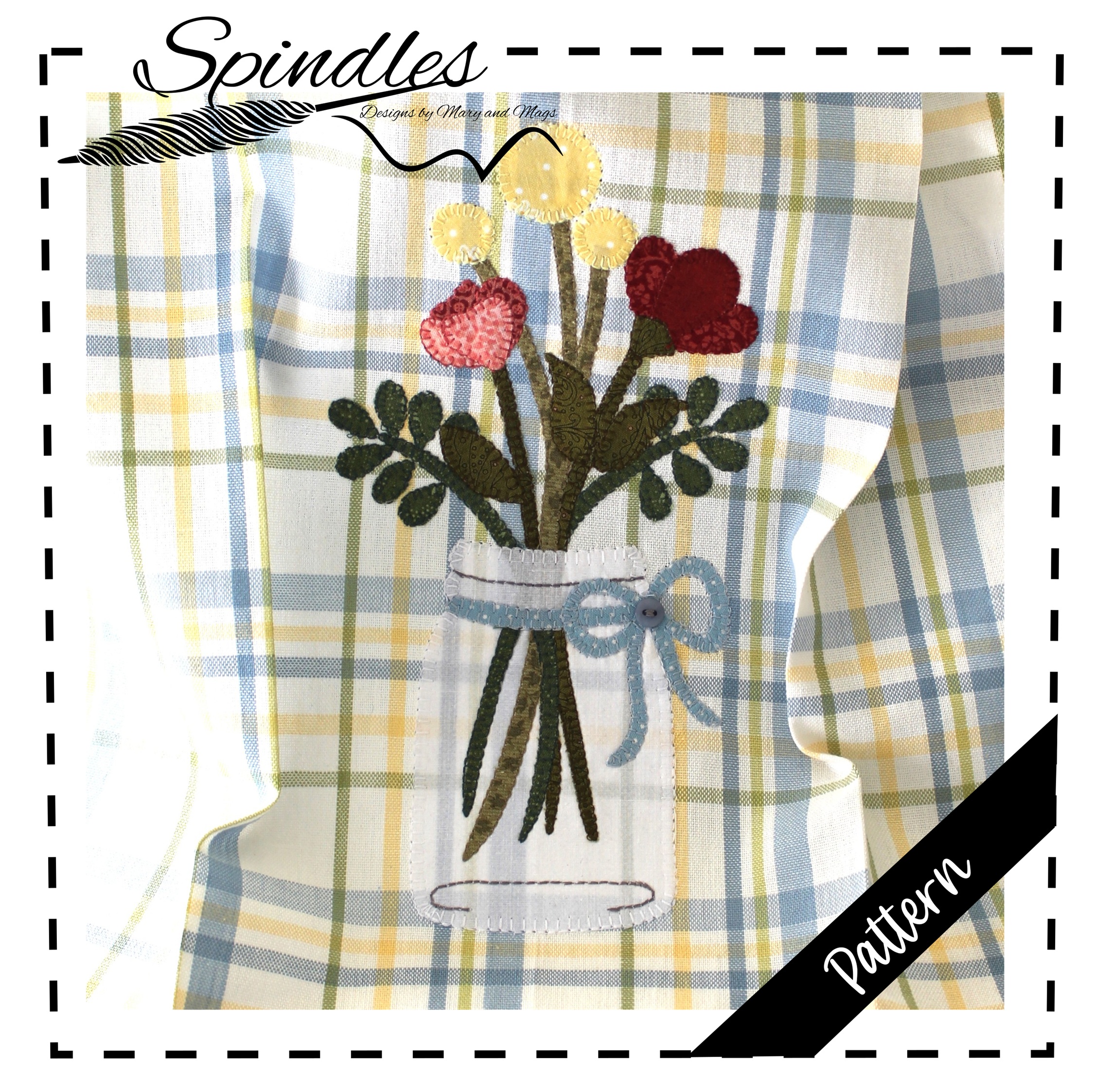 This Applique pattern makes a fun afternoon project.  Make your own great gifts for family and friends with our original “Mason Jar” applique pattern. Whether displayed on a kitchen towel or turned into a cozy wall hanging, this project is ideal for adding handmade warmth to your everyday décor. It features a Mason jar of flowers that can be displayed year round in any décor.