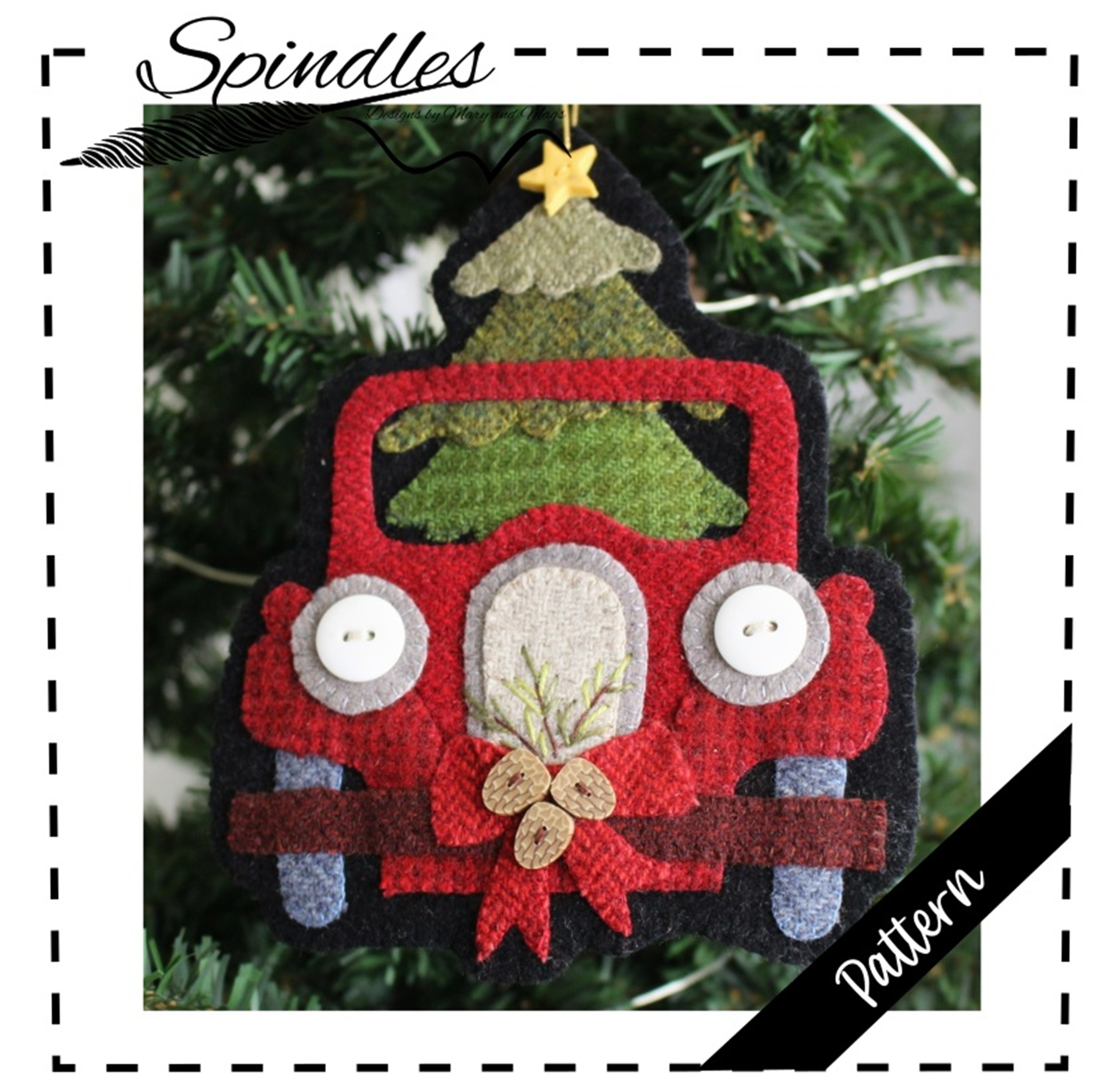 Create a timeless holiday treasure with this Vintage Truck Applique Ornament Pattern. Designed for wool or felt, this pattern features a classic red truck carrying a Christmas tree, finished with button headlights, a festive bow, and charming applique details. Perfect for adding a handmade touch to your Christmas tree, gifting to friends, or decorating your home with vintage-inspired charm.
